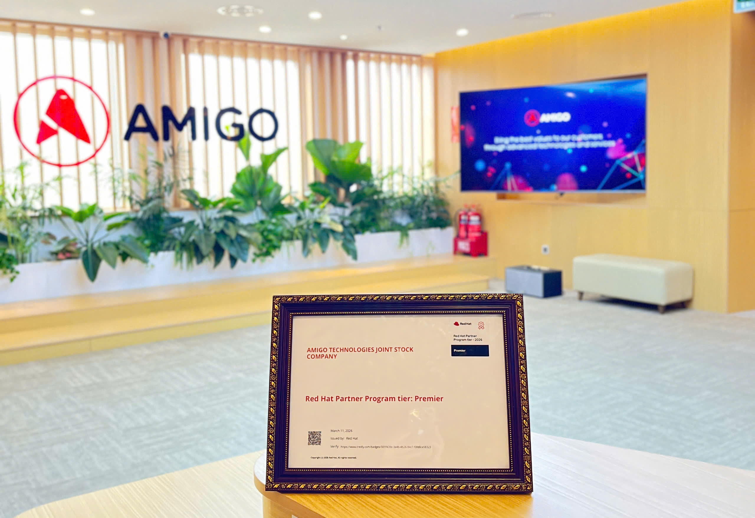 Ngày 12/03/2026, Công ty Cổ phần Công nghệ Bằng Hữu (Amigo) tiếp tục được Red Hat trao tặng chứng nhận Premier Partner 2026, đánh dấu năm thứ hai liên tiếp đạt cấp độ đối tác cao nhất trong hệ sinh thái toàn cầu của Red Hat. Đồng thời, trong nhiều năm liền, Amigo dẫn đầu về doanh số và năng lực triển khai các giải pháp chiến lược như OpenShift, Ansible, và RHEL tại thị trường Việt Nam.