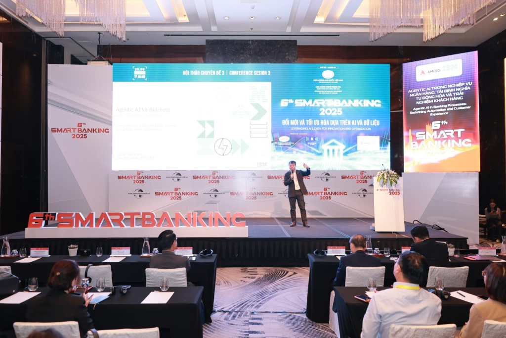 One of the summit’s standout moments was a compelling presentation by Mr. Nguyen Tuan Khang – Head of Data & AI, IBM Southeast Asia on the topic: “Agentic AI in Banking Operations: Redefining Automation and Customer Experience“.